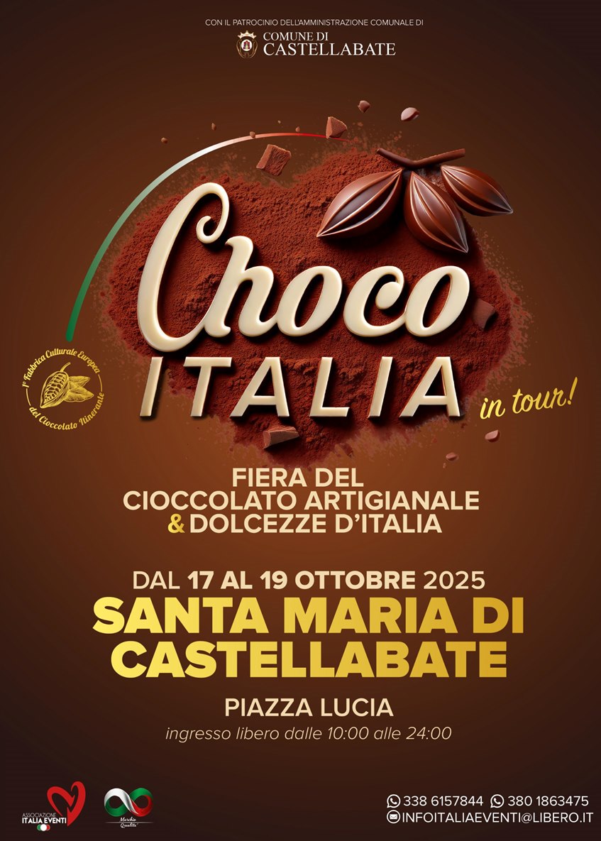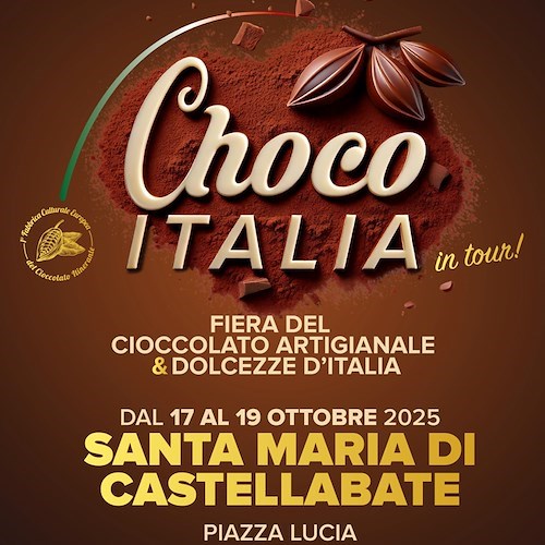 SANTA MARIA DI CASTELLABATE (SA) - Il profumo del cioccolato invaderà il Cilento dal 17 al 19 ottobre 2025, quando in Piazza Lucia farà tappa "Choco Italia in tour", la grande fiera del cioccolato artigianale e delle dolcezze d'Italia.